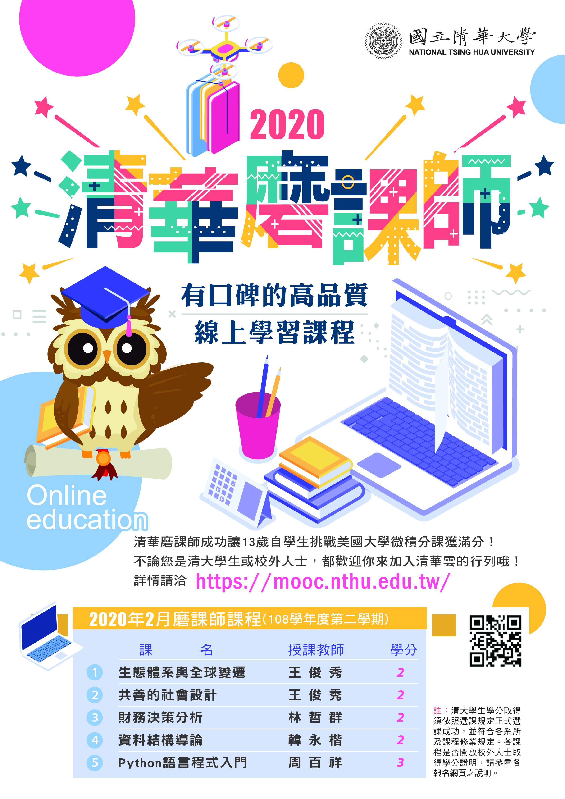 清華大學2020春季磨課師MOOCs線上課程,即日起開放報名