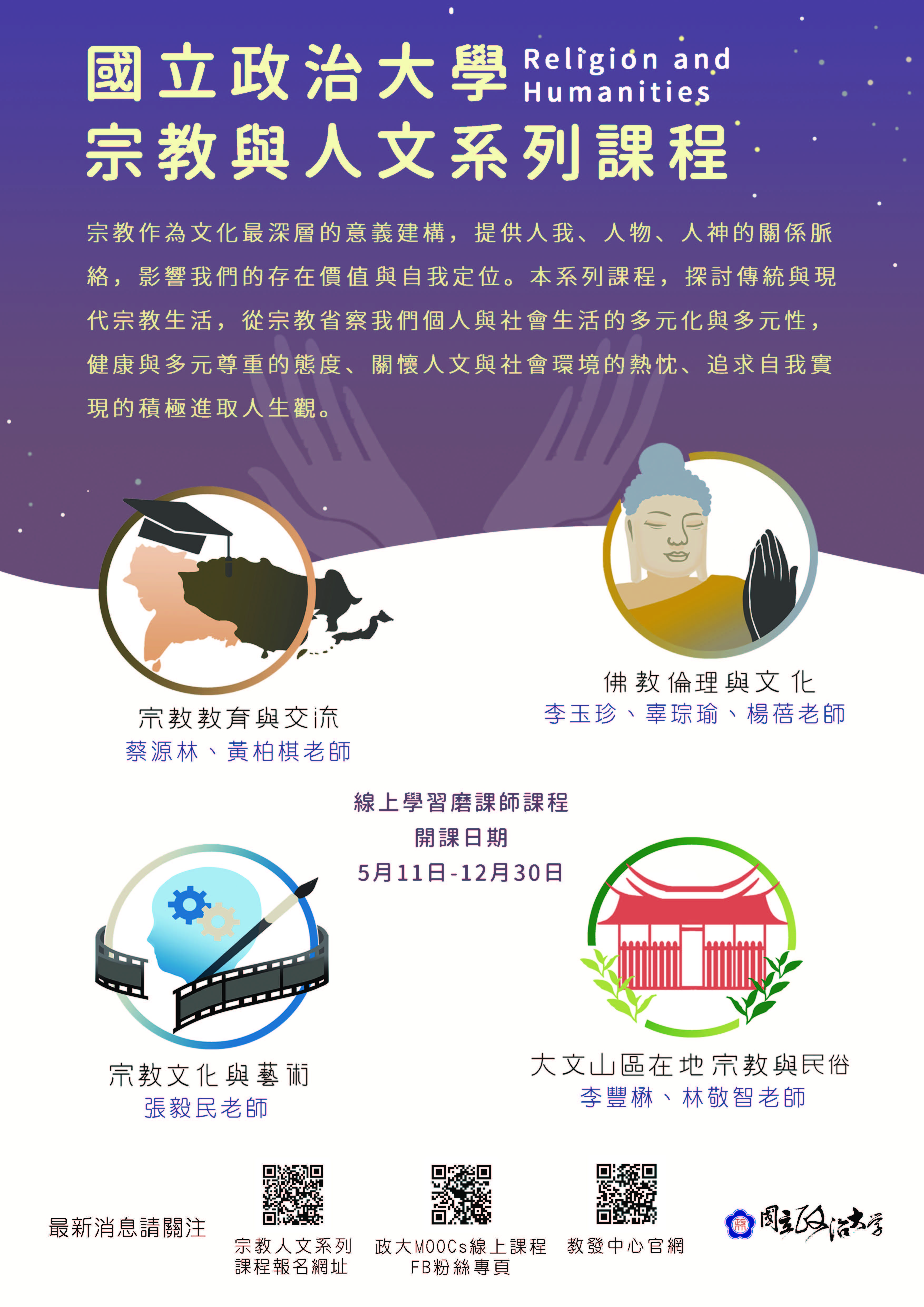 國立政治大學製磨課師「宗教與人文」系列課程自109年5月11日起,