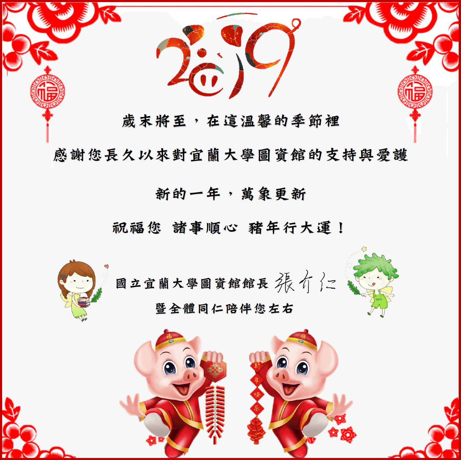 【國立宜蘭大學圖書資訊館】祝福您新年快樂??豬事順心