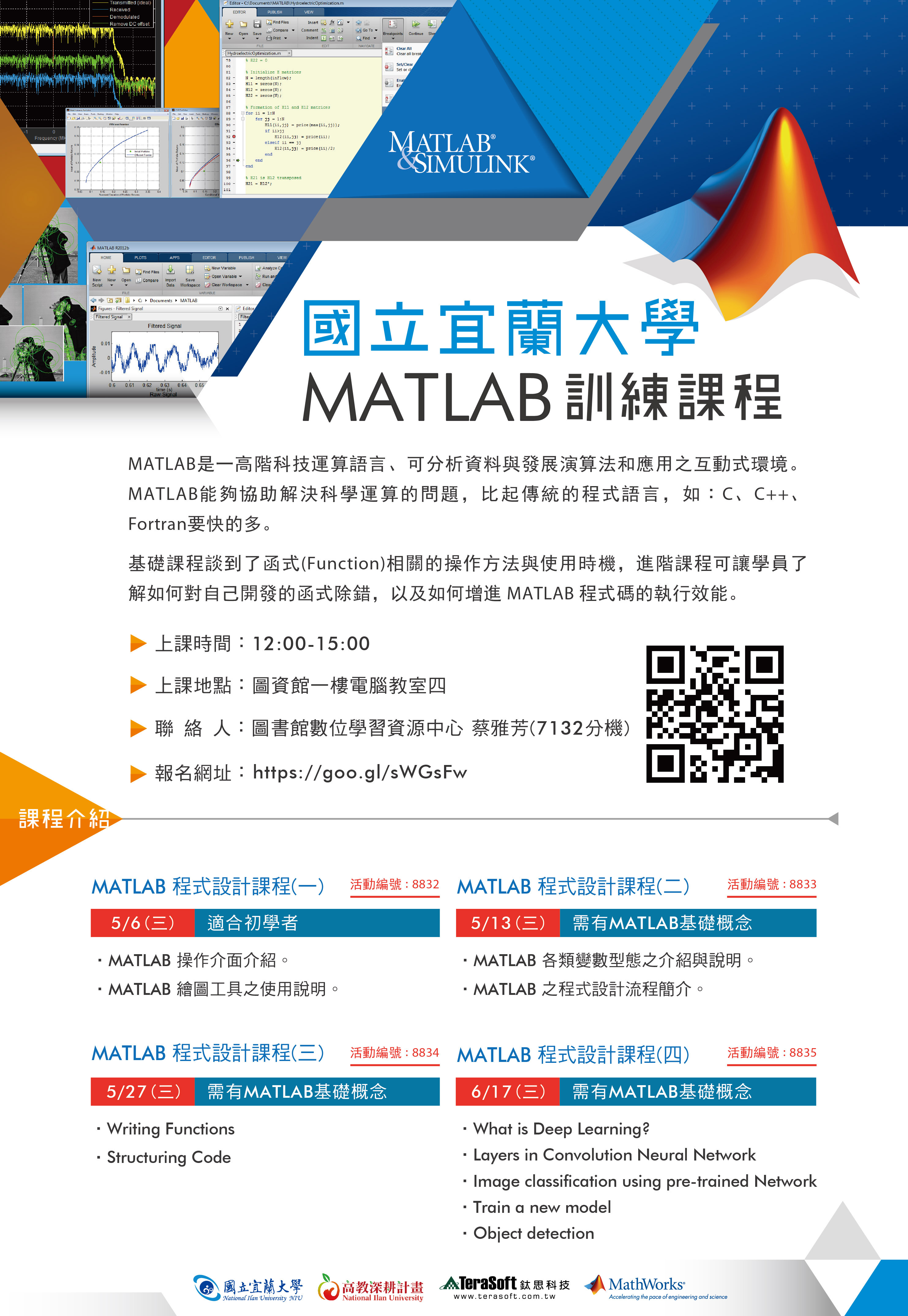 【高深分項二】MATLAB程式設計訓練課程,歡迎全校師生踴躍報名參加