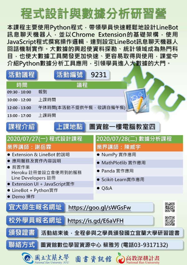 一、活動名稱:程式設計與數據分析研習營